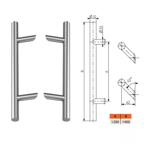 Ajtófogantyú 1200/1400/45 (kétoldali szerelékkel)