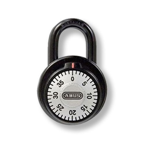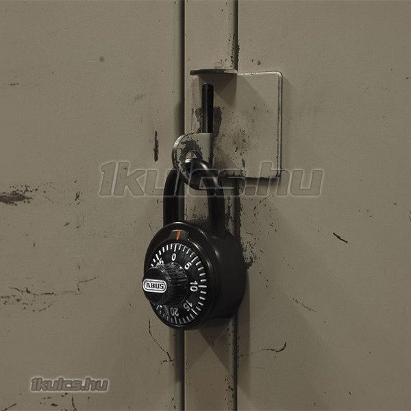 Abus 78/50 forgótárcsás számkombinációs lakat. Ismerős lehet az amerikai filmekből, a gyárilag beállított egyedi kódot a lakat előlapján elhelyezett tekerőgomb többszöri elfordításával lehet megadni. A kód nem változtaható meg, megadása általában némi gyakorlást igényel, még annak ellenére is, hogy a csomagoláson magyar nyelvű használati utasítás is található.