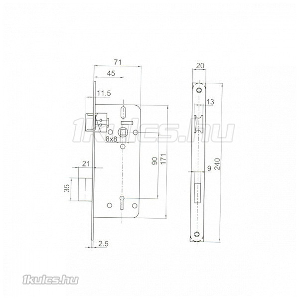 Kerekített előlappal rendelkező, dupla reteszelésű, Euro profilú cilinderes bevésőzár.