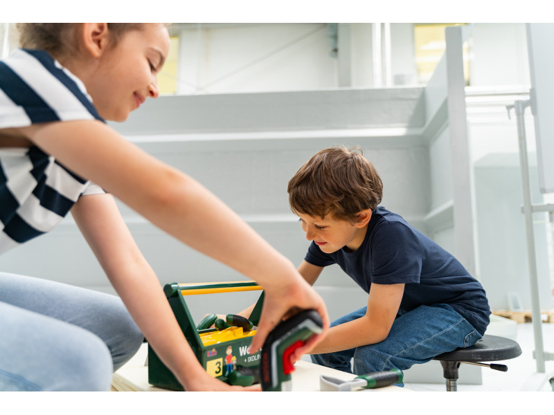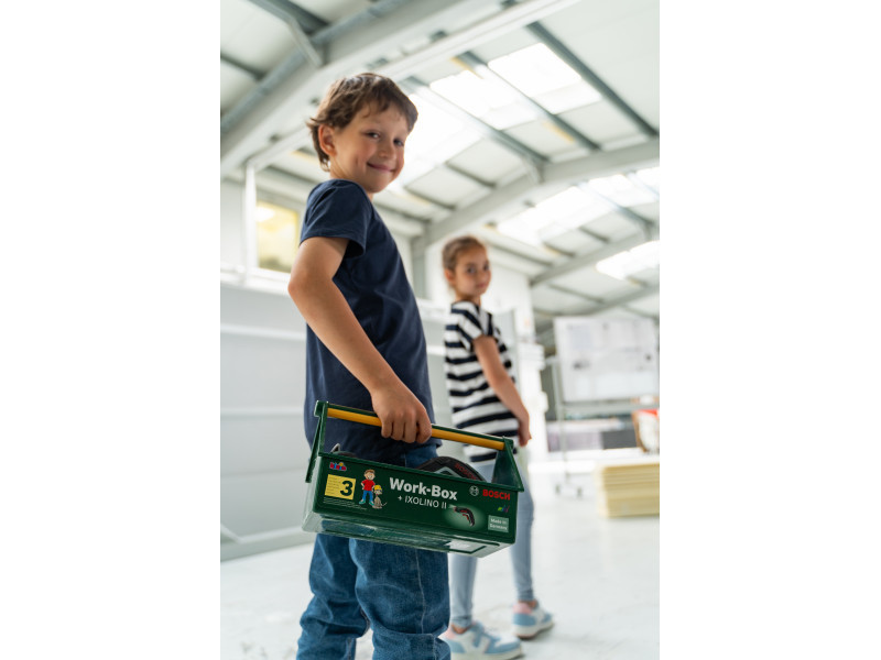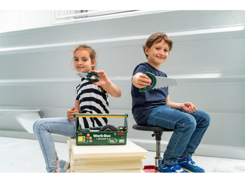 Bosch 7 részes szerszámosláda gyermekek számára, amely praktikus hordozó fogantyúval rendelkezik.