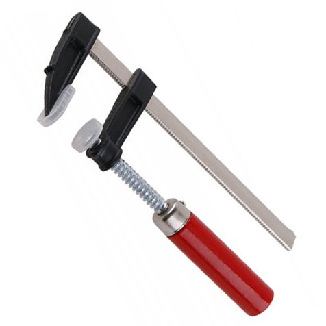 FESTA asztalos szorító. Hagyományos csavarmenetes kivitelezésű. Szorítópofáin műanyag tappancsokkal rendelkezik, ezáltal nem sérti a szorítandó anyagot. Markolata fából készült, és pirosra festett.