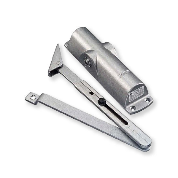 A Geze TS-1000 felső szerelésű olajfékes ajtóbehúzó egyszárnyú ajtókhoz. DIN EN 1154 szabványnak megfelelően a csúkóerő nagysága EN 2/3, állítható a csukási sebesség, maximum 950 mm ajtólap szélességig használható. Jobbos és balos ajtóknál átalakítás nélkül egyaránt alkalmazható, szerelése egyszerű, a csomagban található szerelősablon használatával.