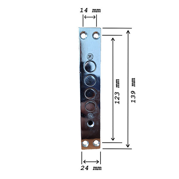 Kínai acél ajtóba építhető felsőzár. Két változatban elérhető, 24 valamint 30 mm-es előlappal. Az előlap a zár azon része, mely akkor is látható az ajtó éle felől, mikor a zár be van építve. A zárbetét közepe az előlap külső szélétől mérve ~60 mm mélyen helyezkedik el. A zárbetéttel történő ráfordítás eredményeképp 4 rúd mozdul ki a zár előlapjából.