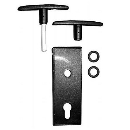 Igényes garnitúra garázszárakhoz. Tartalmazza a kilincseket, a hozzájuk tartozó kilincsgyűrűket illetve címet.