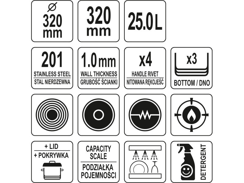 YATO YG-00015 GASTRO Fazék fedővel 25 liter 320 x 320 mm inox
