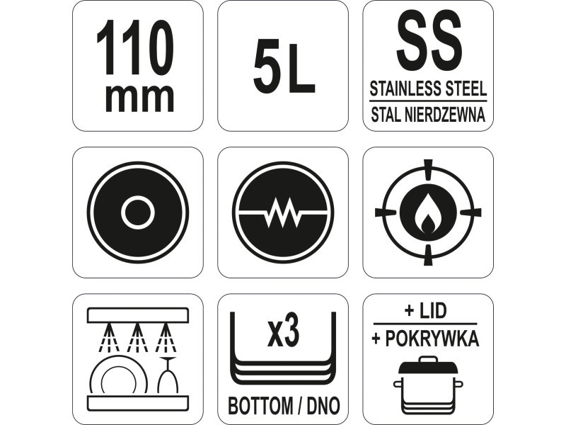 YATO YG-00041 GASTRO Lábas fedővel 5 liter 240 x 110 mm inox