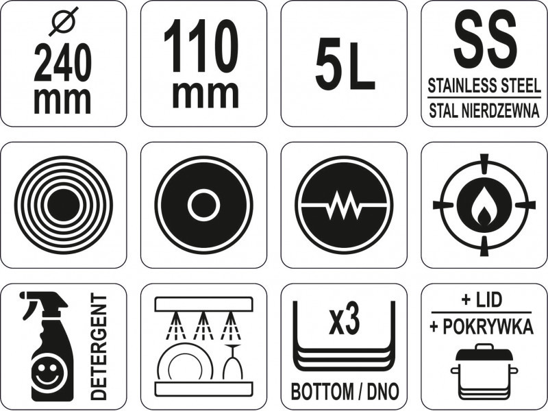 YATO YG-00062 GASTRO Nyeles lábas fedővel 5 liter 240 x 110 mm inox