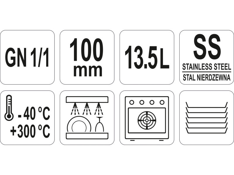 YATO YG-00253 GASTRO Inox betét 100 mm GN 1/1