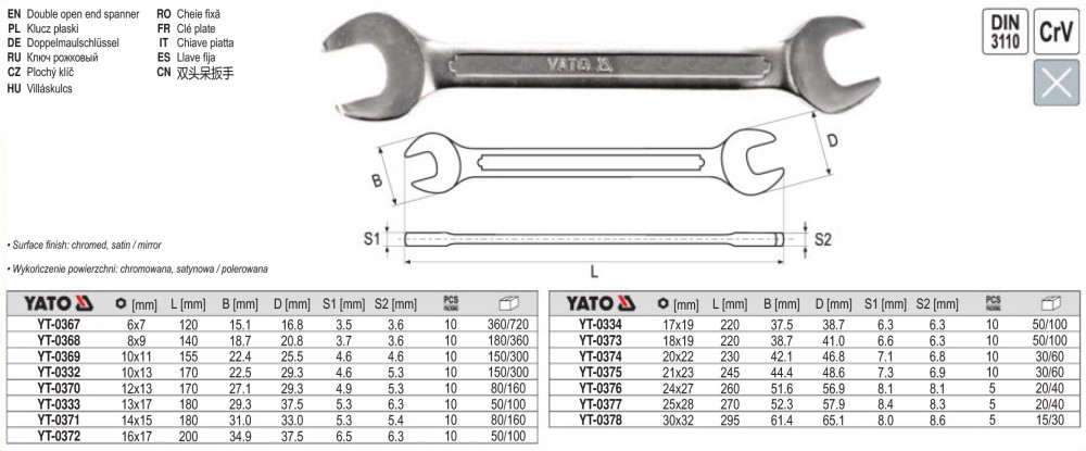YATO YT-0332 Villáskulcs 10 x 13 mm / 170 mm CrV