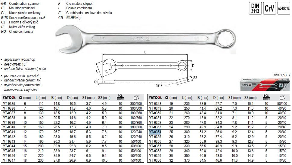 YATO YT-0354 Csillag-villáskulcs 25 mm / 300 mm CrV