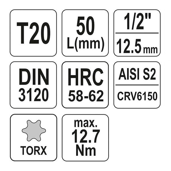 YATO YT-04310 Bit dugókulcs Torx 1/2 Col T20 CrV
