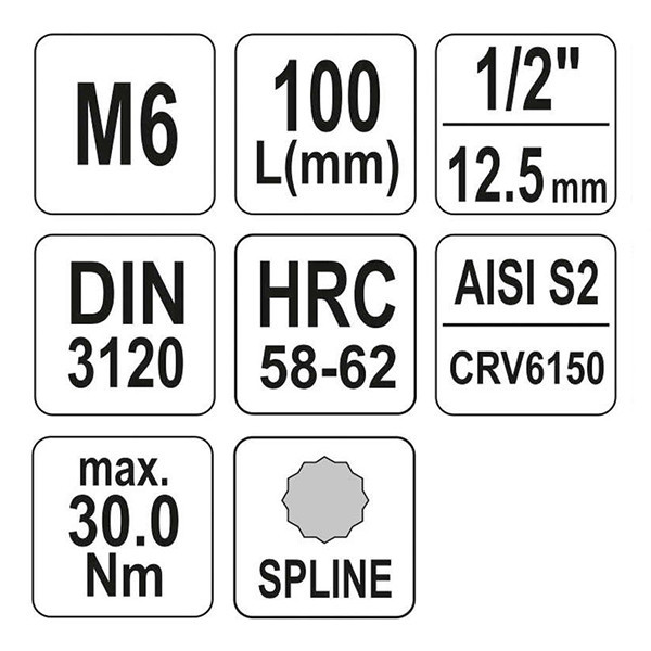 YATO YT-04351 Hosszú bit dugókulcs Spline 1/2 Col M6 CrV