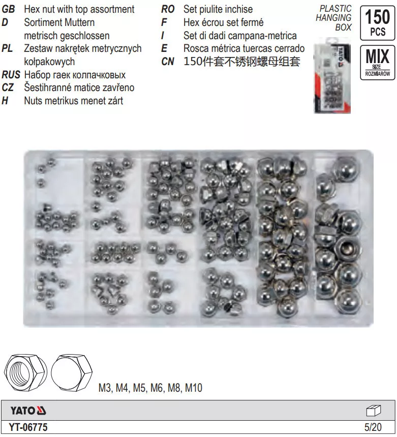 YATO YT-06775 Hatlapú zárt csavaranya készlet 150 részes M3-M10