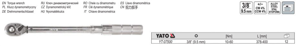 YATO YT-07500 Nyomatékkulcs 3/8 Col 10-60 Nm / 378-400 mm
