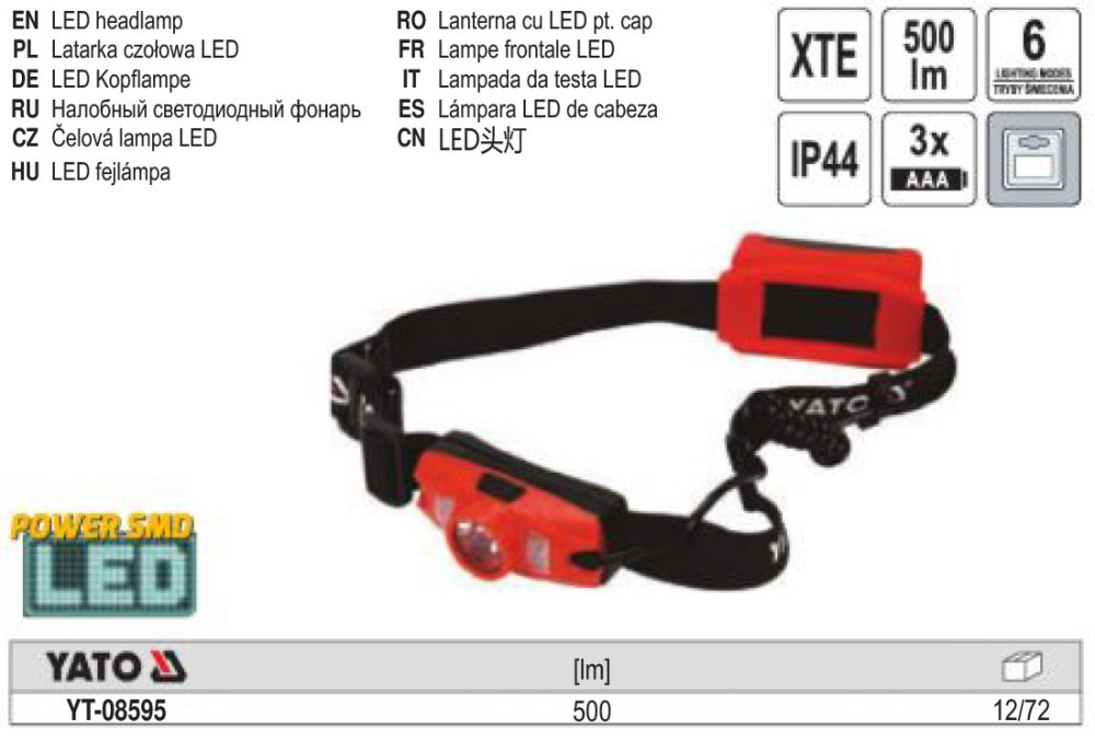 YATO YT-08595 Elemes LED fejlámpa 500 lumen
