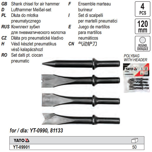 YATO YT-09901 Vésőszár készlet 4 részes (YT-0990-hez)