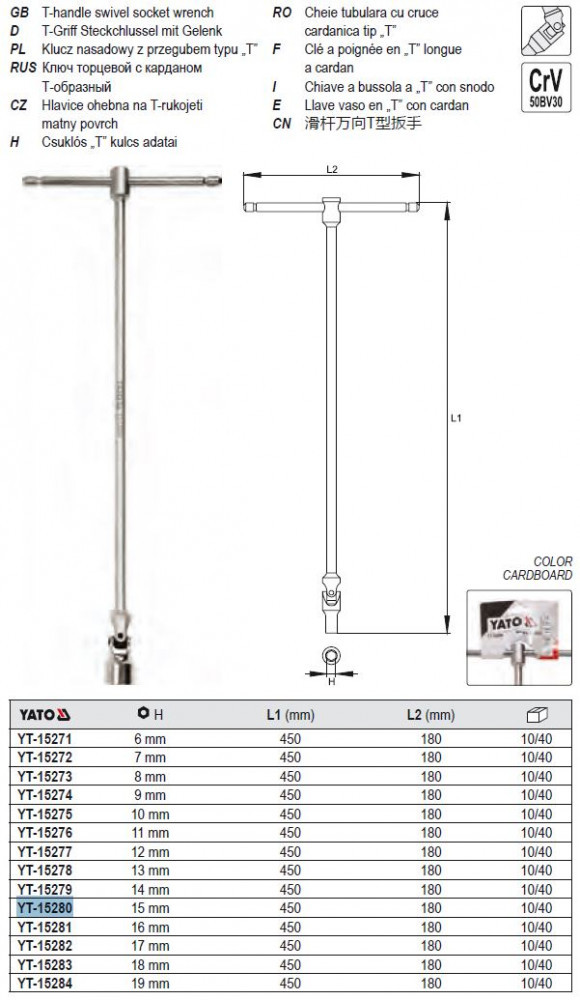 YATO YT-15280 Csuklós T-kulcs 15 mm / 450 mm CrV
