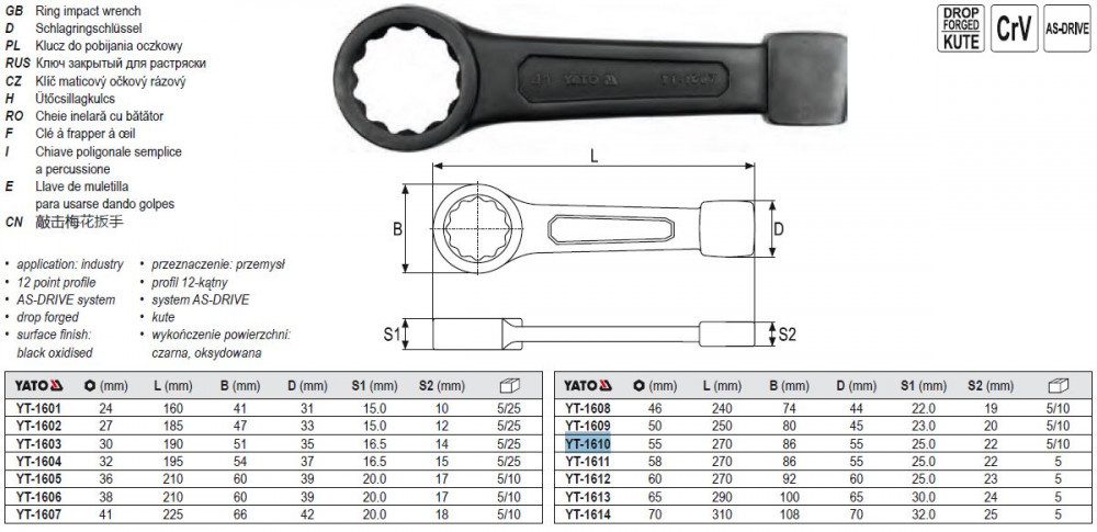 YATO YT-1610 Üthető csillagkulcs 55 mm / 270 mm CrV