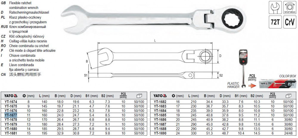 YATO YT-1677 Racsnis csuklós csillag-villáskulcs 11 mm / 160 mm 72T CrV