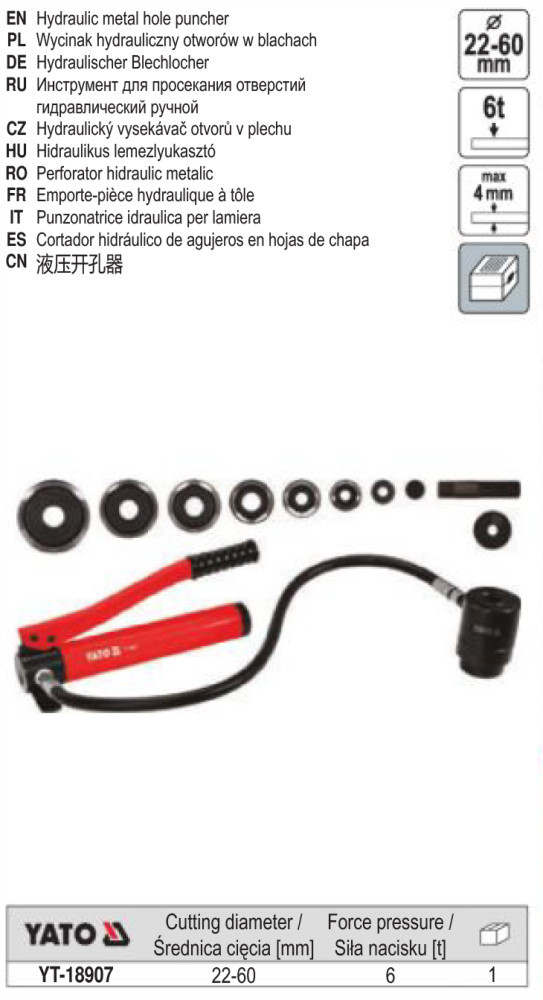 YATO YT-18907 Hidraulikus lemezlyukasztó 22 - 60 mm
