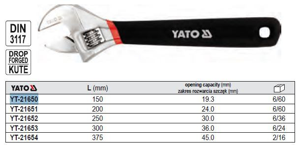 YATO YT-21650 Állítható villáskulcs 0-19,3 / 150 mm
