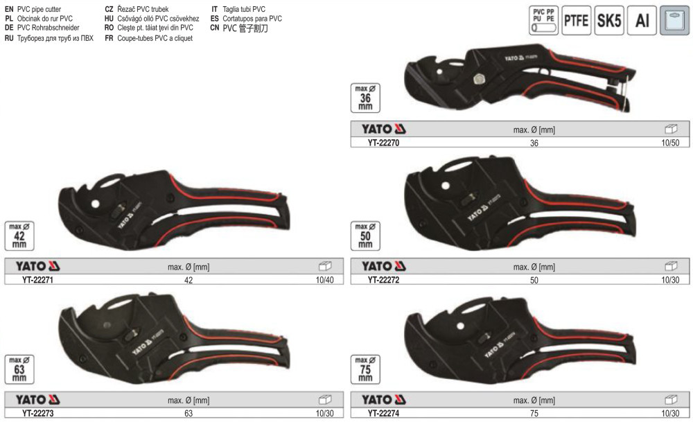 YATO YT-22270 Csővágó olló 36 mm PVC
