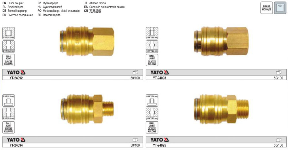 YATO YT-24095 Pneumatikus gyorscsatlakozó 3/8 Col x 1/4 Col sárgaréz