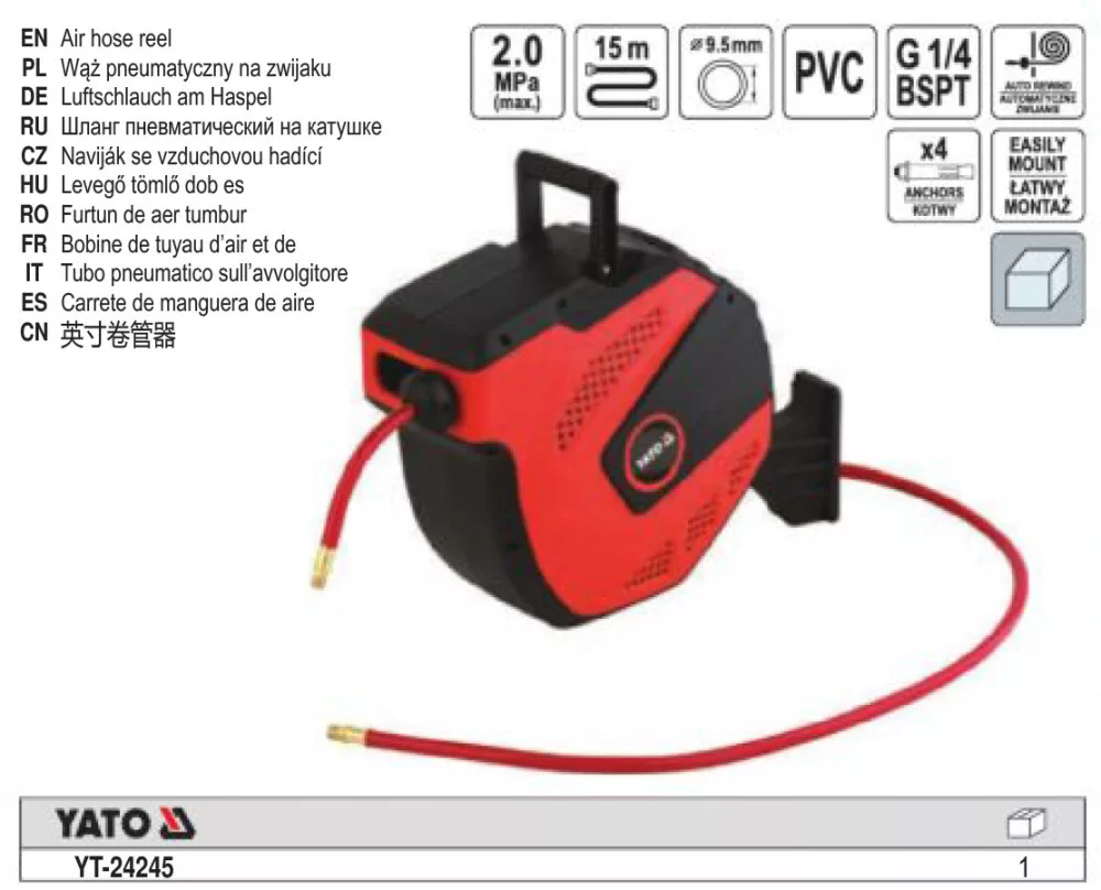 YATO YT-24245 Automata pneumatikus tömlődob 9,5 mm 15 m