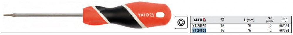 YATO YT-25951 Csavarhúzó Torx T6 x 75 mm mágneses