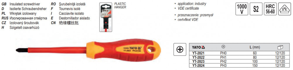 YATO YT-2821 Csavarhúzó PH1 x 80 mm 1000 V-ig szigetelt