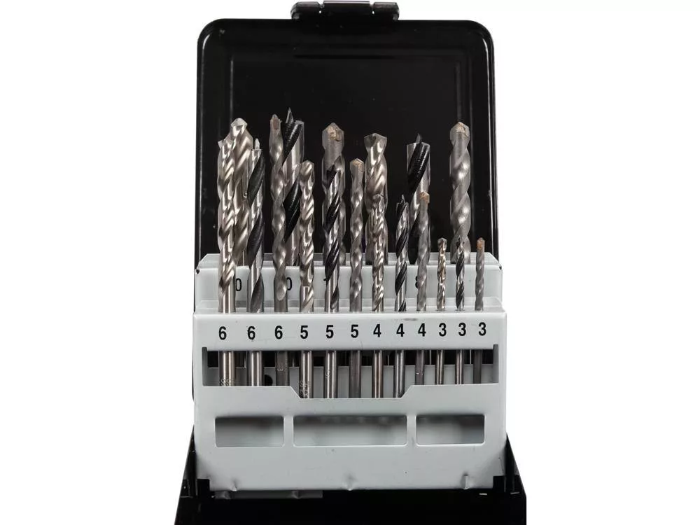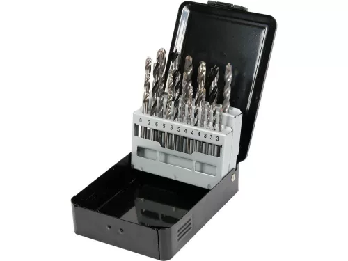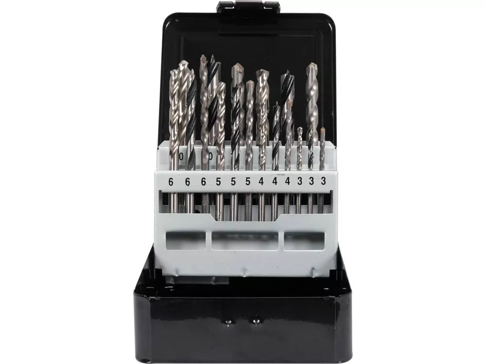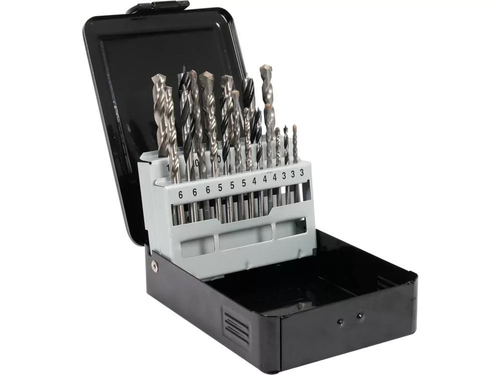 • Tartalmaz különböző átmérőjű fúrókat fém, fa, műanyag és beton fúrásához