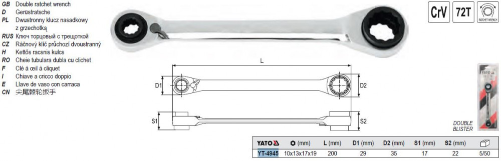 DOUBLE RATCHET WRENCH 10x13x17x19MM