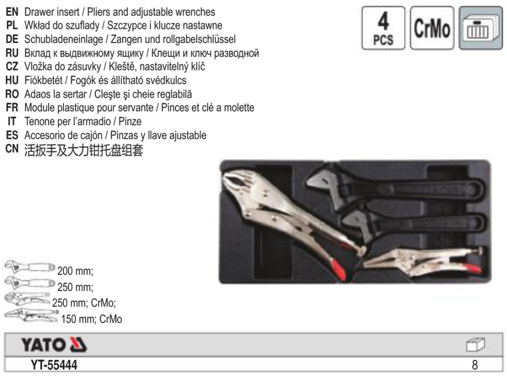 YATO YT-55444 Állítható villáskulcs és fogó készlet 4 részes (fiókbetét)