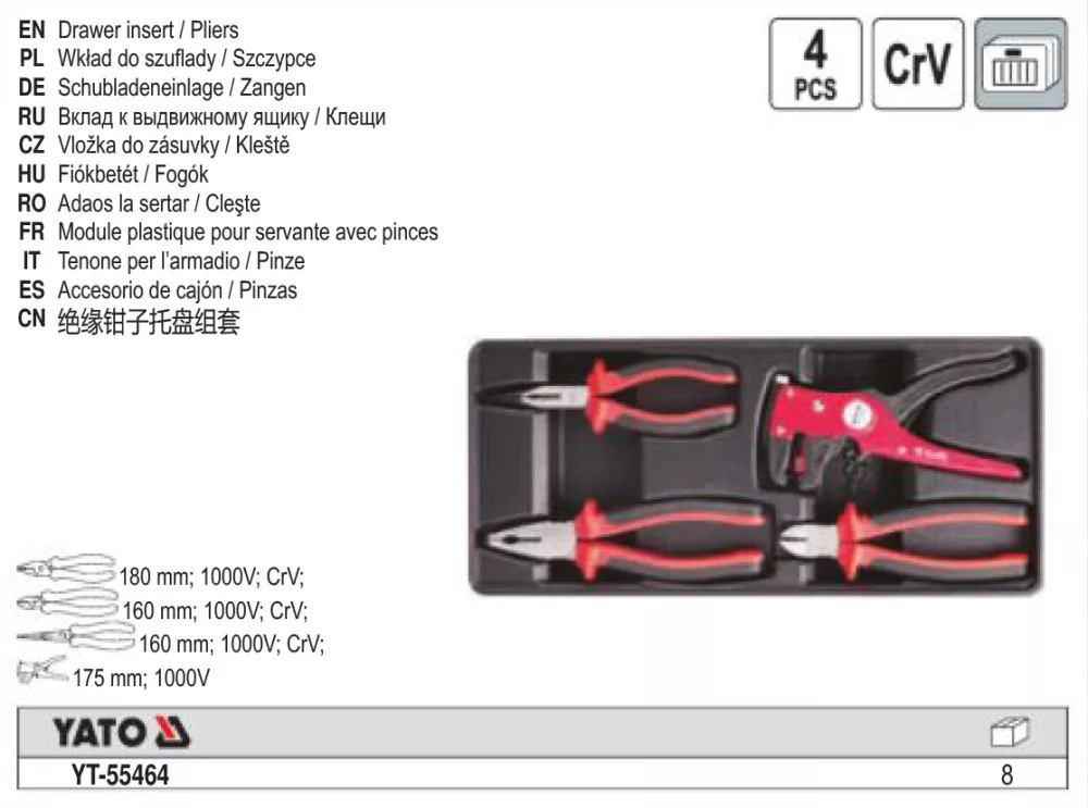 YATO YT-55464 Fogó készlet 4 részes 1000 V-ig szigetelt (fiókbetét)