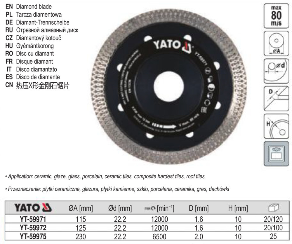 YATO YT-59971 Gyémánt vágókorong 115 x 1,6 x 10 x 22,2 mm folytonos