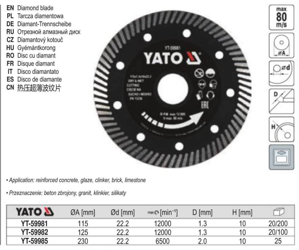 YATO YT-59985 Gyémánt vágókorong 230 x 2,0 x 10 x 22,2 mm turbó