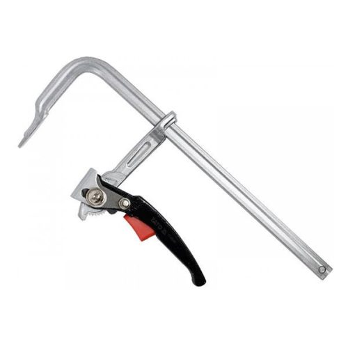 Racsnis szorító a YATO-tól. Ennél a típusnál a rögzítés nem egy menet segítségével vagy egy pumpálható kar segítségével történik, hanem egy félköríves fogazott racsni segítségével történik. Emiatt látványra egy kicsit érdekesebb mint társai, de végeredményben ugyan azt a célt szolgálja. Mivel szorítópofái nem rendelkeznek műanyag tappancsokkal így inkább vasszerkezetek rögzítéséhez ajánljuk.