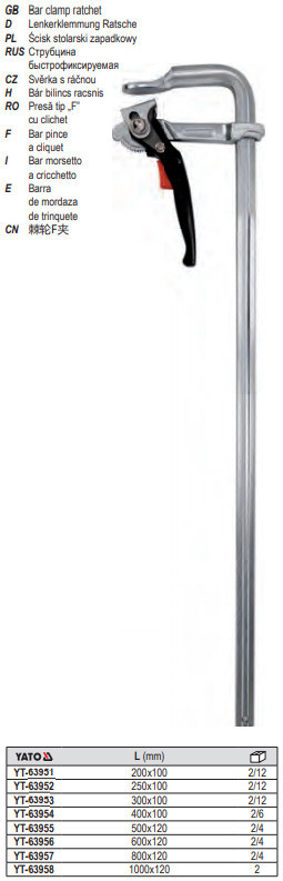 YATO YT-63955 Racsnis szorító 500 x 120 mm