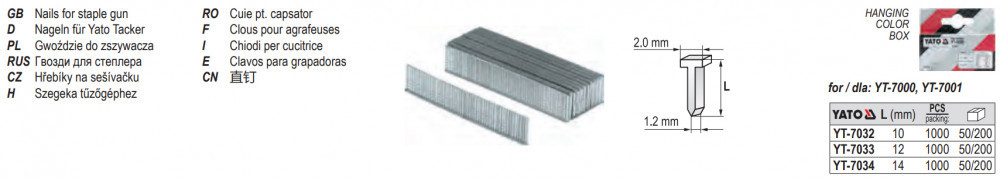 YATO YT-7032 Szeg tűzőgéphez 10 mm
