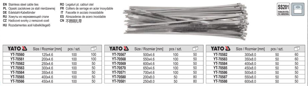 YATO YT-70560 Kábelkötegelő Inox 125 x 4,6 mm (100 db/cs)