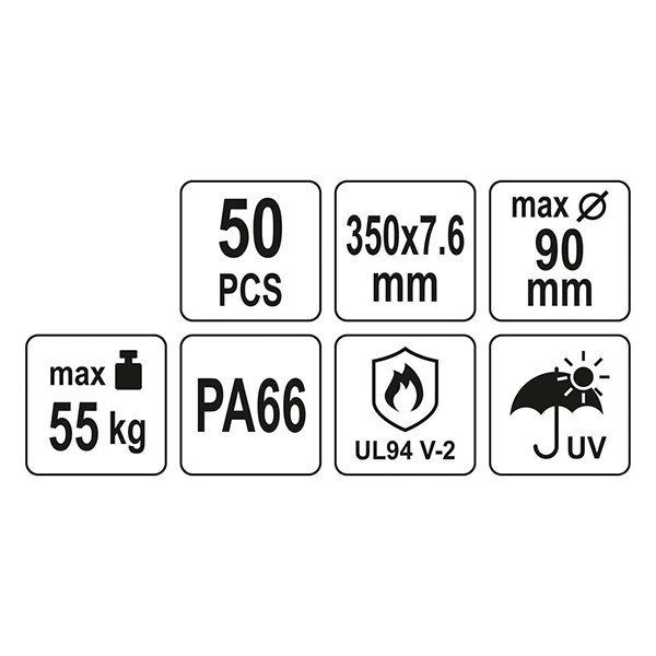YATO YT-70652 Kábelkötegelő fekete 350 x 7,6 mm (50 db/cs)