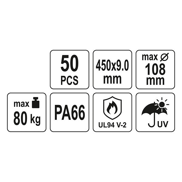 YATO YT-70656 Kábelkötegelő fekete 450 x 9,0 mm (50 db/cs)
