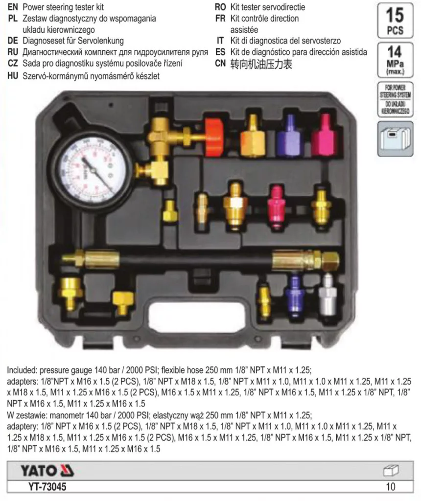 YATO YT-73045 Szervokormány nyomásmérő készlet