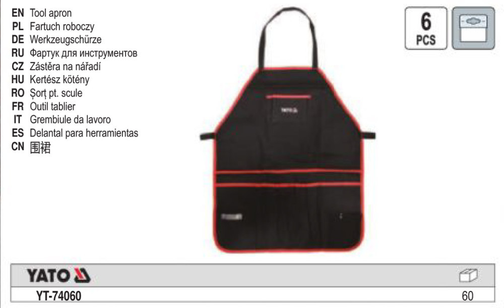 YATO YT-74060 Szerszámtartó kötény 690 x 560 mm vízálló 6 zsebes