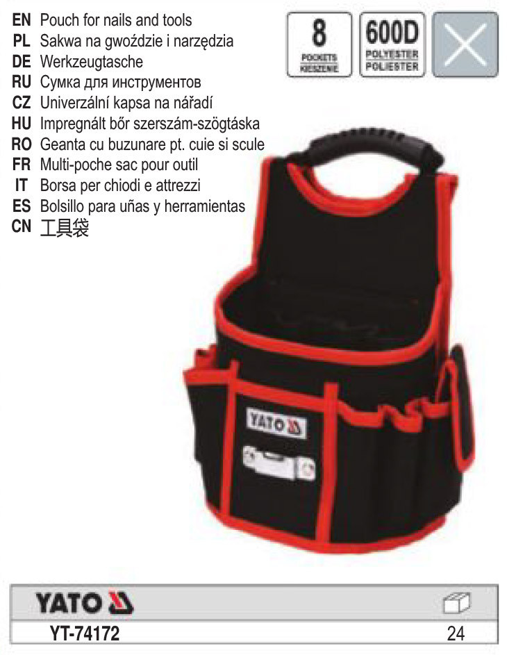 YATO YT-74172 Szög és szerszámtáska 8 zsebes