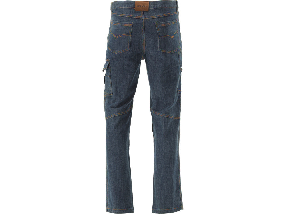 YATO YT-79080 Összeszerelő munkanadrág a MARA sorozatból elasztánnal, rugalmas farmerből. Tíz zseb, köztük egy multifunkcionális zseb a bal lábon. A térdeken lyukak térdvédők számára. Számos fedővarrás és szegecs erősíti az anyagok illesztéseit a szakadásnak leginkább kitett helyeken