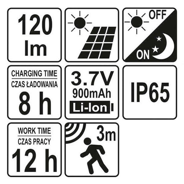 YATO YT-81855 Napelemes fali LED lámpa 3,7 V