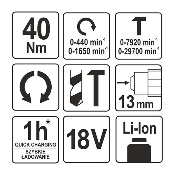 YATO YT-82787 Akkus ütvefúró-csavarozó 40 Nm 18 V Li-Ion (akku + töltő nélkül)