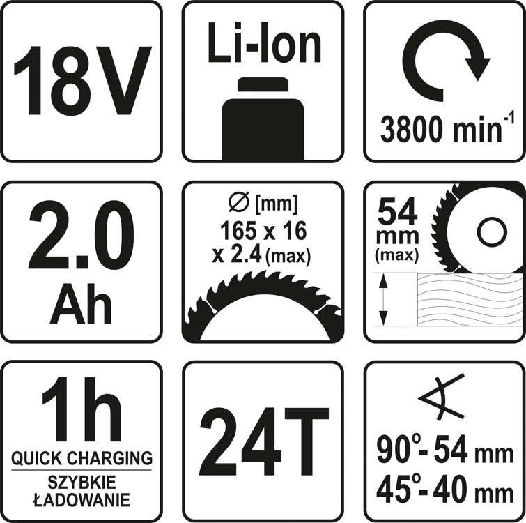 YATO YT-82810 Akkus körfűrész 165 mm 18 V Li-Ion (1 x 2,0 Ah akku + töltő)