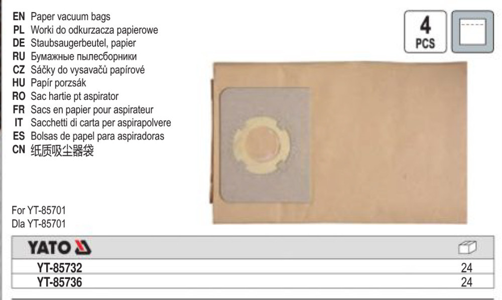 YATO YT-85736 Papír porzsák 20 liter YT-85700 porszívóhoz (4 db/cs)